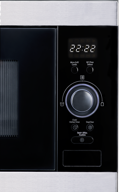 Chrupiące rezultaty z grillemPołączenie mikrofal o mocy **900 W** z wydajnym grillem (**1000 W**) daje Ci nieograniczone możliwości przygotowywania potraw. Do dyspozycji masz **8 automatycznych programów** oraz precyzyjne rozmrażanie według wagi produktu. Wnętrze wykonane ze stali nierdzewnej jest trwałe i bardzo łatwe do utrzymania w czystości. |