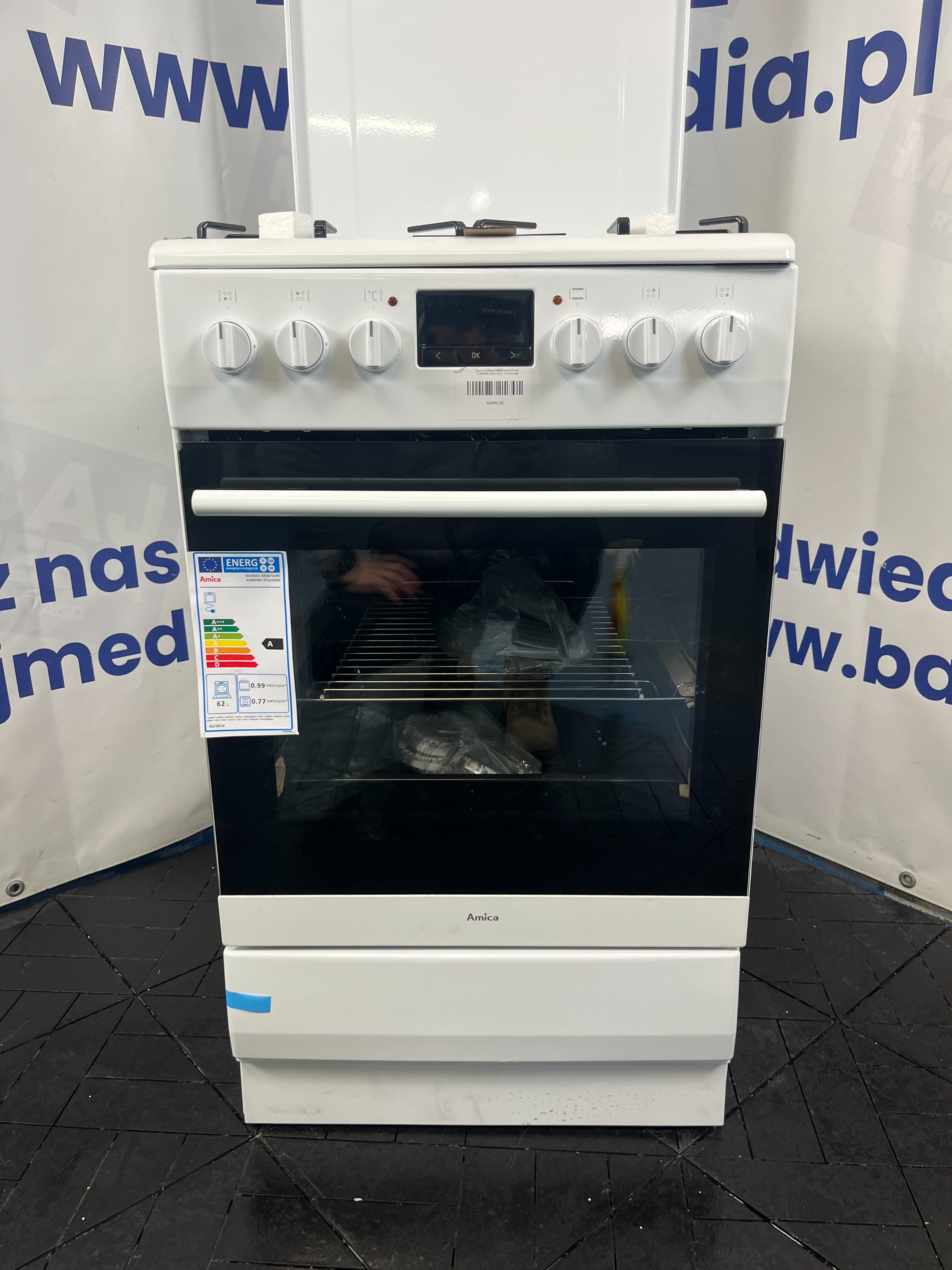 Kuchnia gazowo-elektryczna Amica to połączenie wygody gotowania na gazie z funkcjonalnością piekarnika elektrycznego z termoobiegiem. Idealna do codziennego gotowania i pieczenia.