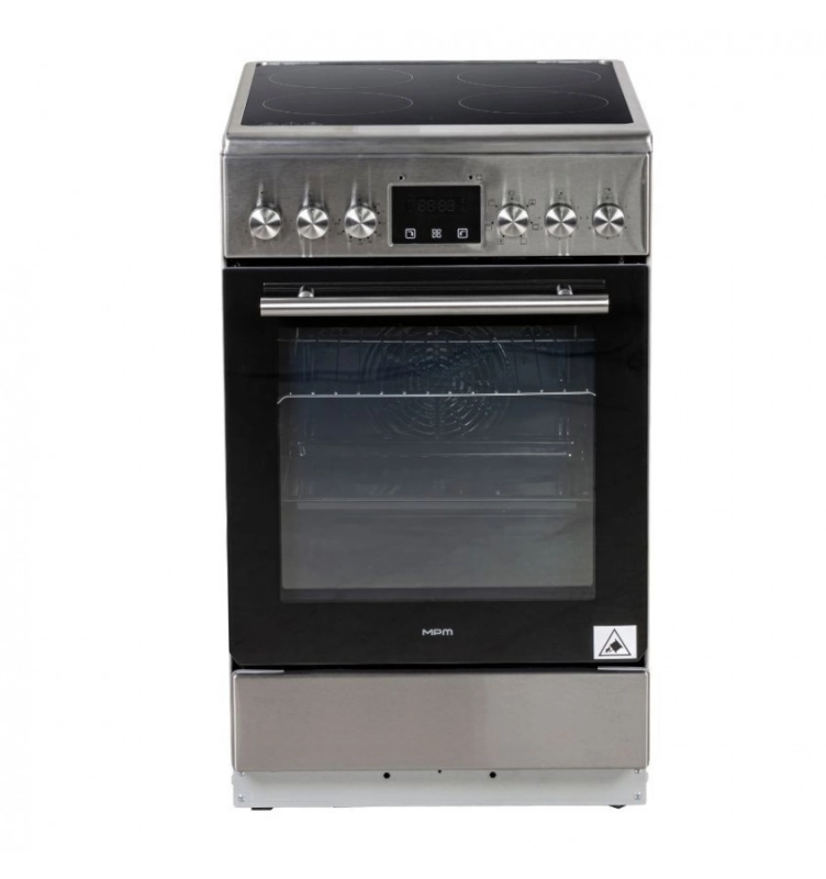 MPM-55-KEI-38 to wydajna kuchnia wolnostojąca o szerokości 50 cm, która łączy w sobie nowoczesność płyty indukcyjnej z funkcjonalnym piekarnikiem elektrycznym. To idealne rozwiązanie dla osób szukających bezpieczeństwa i szybkości – płyta indukcyjna nagrzewa bezpośrednio naczynie, pozostając chłodniejszą w dotyku, a termoobieg pozwala na równomierne pieczenie potraw na każdym poziomie. Eleganckie czarne wykończenie frontu nadaje urządzeniu nowoczesny styl.