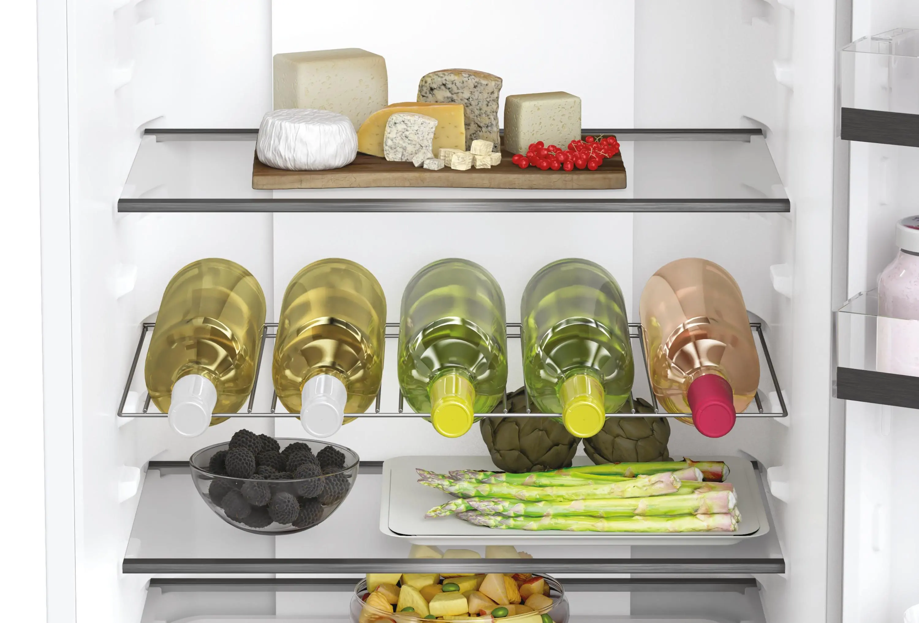 - Szuflada Humidity Zone – zaawansowana strefa z kontrolą wilgotności. Specjalna membrana utrzymuje wilgotność na poziomie 90%, dzięki czemu owoce i warzywa pozostają świeże, soczyste i pełne witamin nawet dwa razy dłużej.