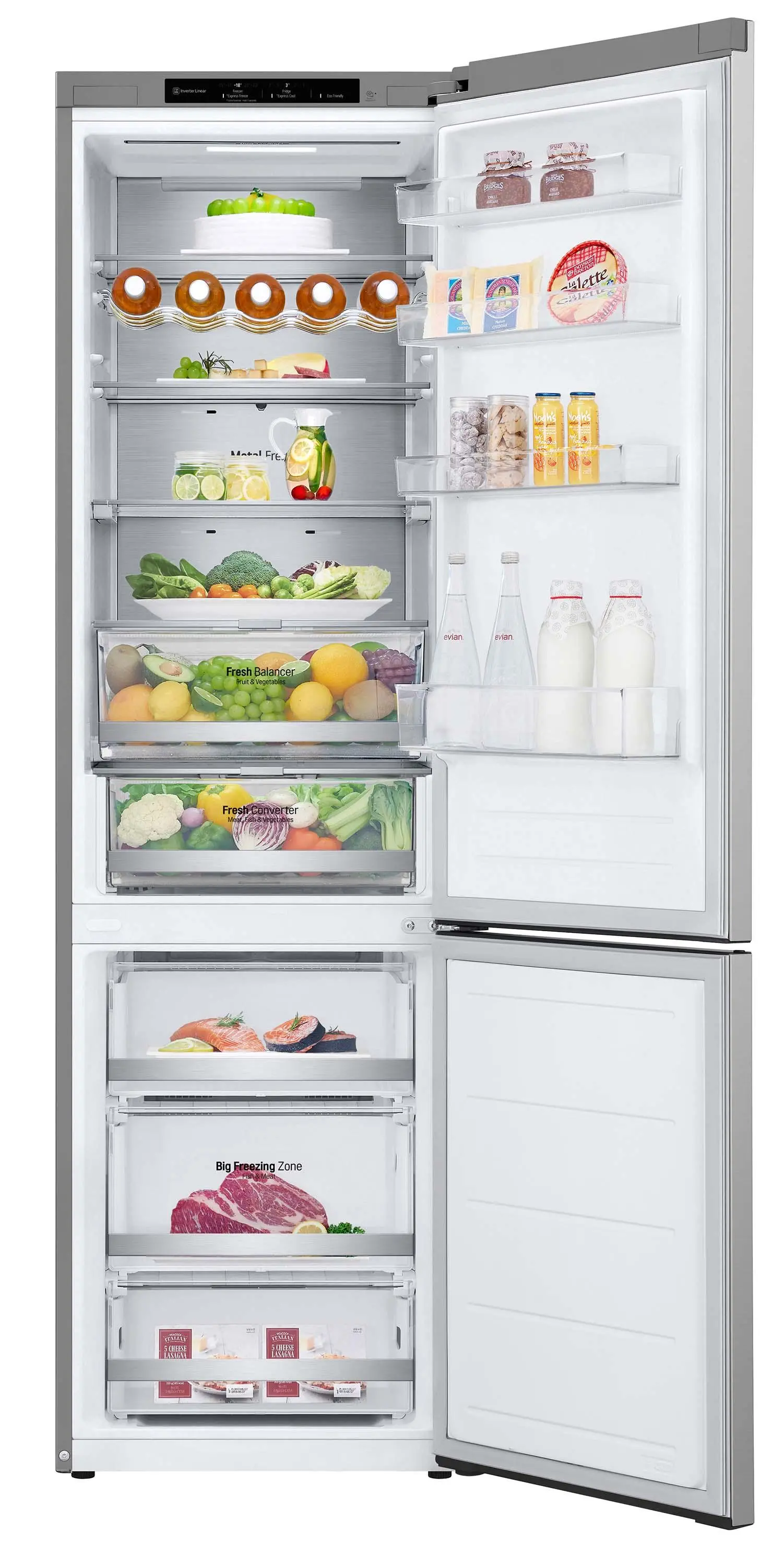 - FRESH Converter™: szuflada "Zero stopni", w której możesz ustawić temperaturę idealną dla mięsa, ryb lub warzyw, zapewniając im perfekcyjne warunki przechowywania.