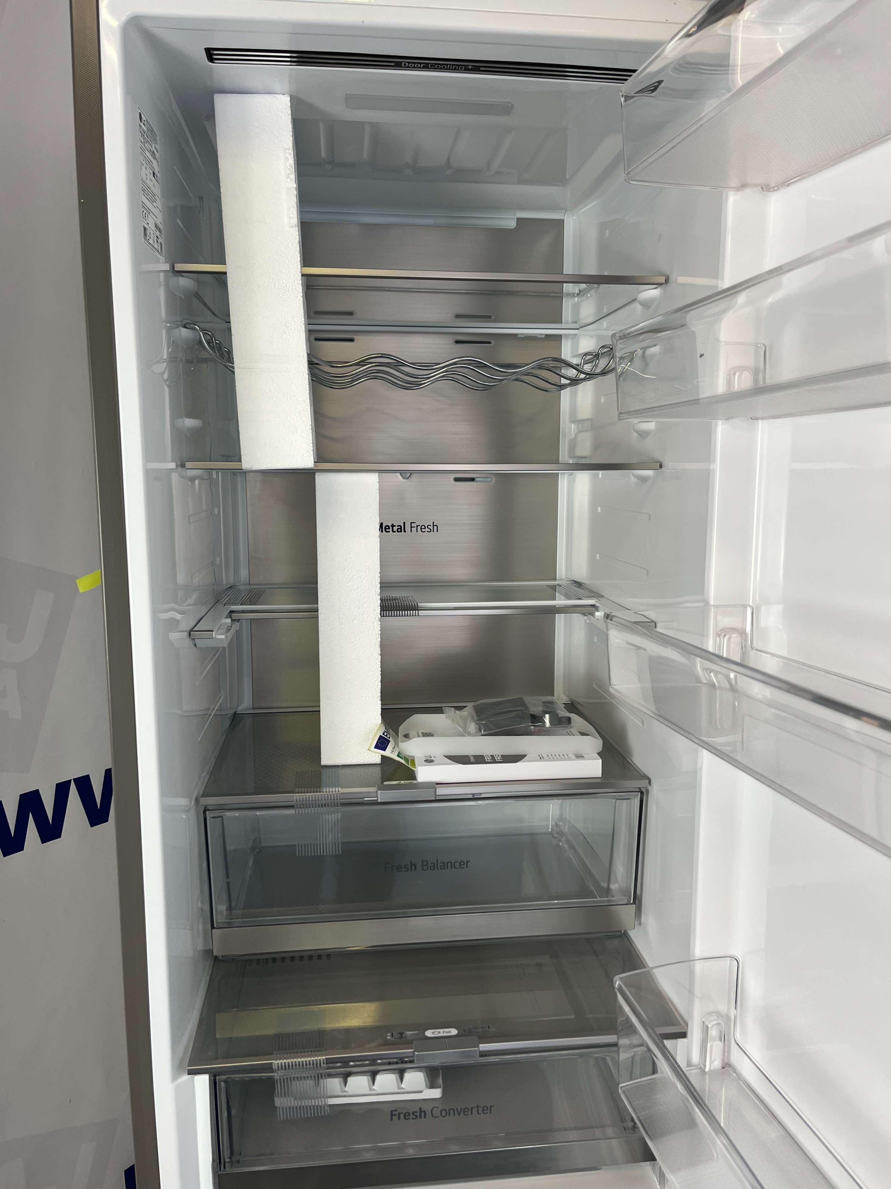 - DoorCooling+™: dodatkowy nawiew powietrza w górnej części lodówki sprawia, że wnętrze chłodzi się do 32% szybciej, co pozwala zachować świeżość produktów na dłużej.