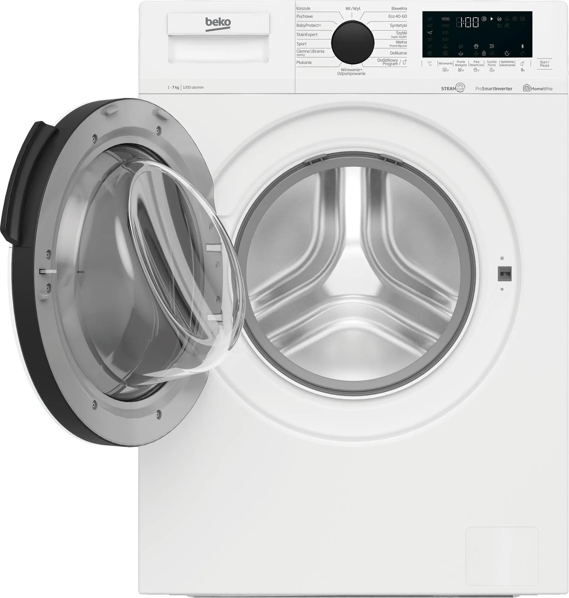 - Zdalne sterowanie (HomeWhiz): steruj pralką za pomocą smartfona, pobieraj nowe programy (np. dla zasłon lub pluszaków) i monitoruj zużycie energii.