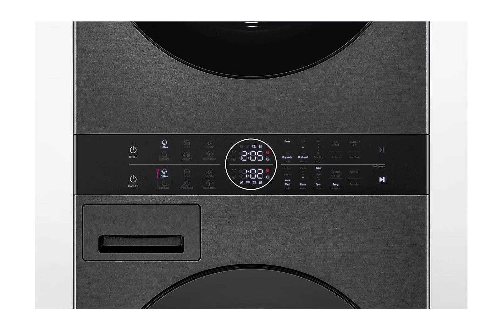 Pralko-suszarka LG WashTower WT1210BBF to zaawansowane technologie w służbie czystości i wygody: oszczędność, szybkość i delikatność dla tkanin. Jeśli szukasz wydajnego, stylowego i niezawodnego urządzenia do kompleksowej pielęgnacji ubrań — to produkt dla Ciebie.