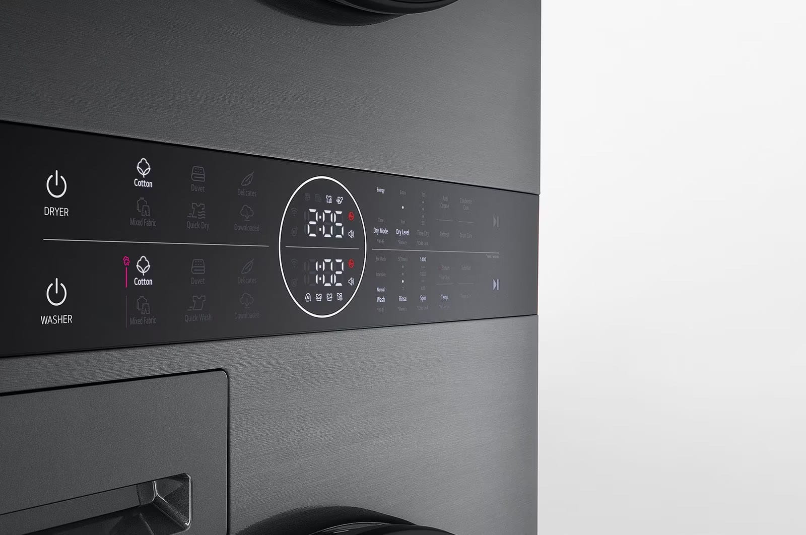 - AI DirectDrive – inteligentne sterowanie pracą silnika dla lepszej ochrony tkanin, niższego zużycia energii i dłuższej żywotności urządzenia.