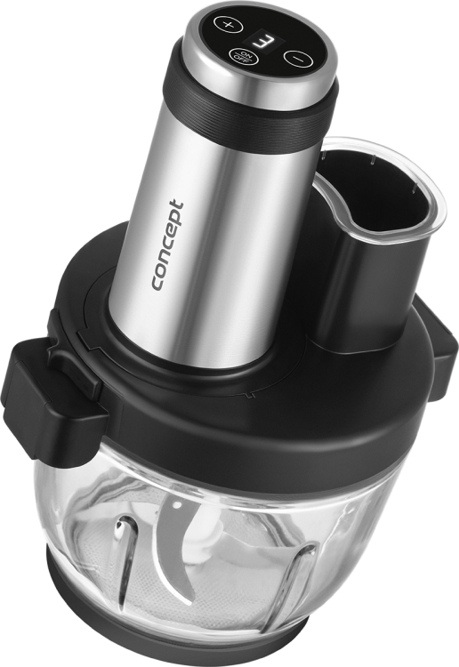 Intuicyjna obsługaPanel cyfrowy pozwala na błyskawiczny wybór jednej z **4 prędkości**. O Twoje bezpieczeństwo dba inteligentna blokada pokrywy (urządzenie nie ruszy bez poprawnego montażu) oraz gumowa, antypoślizgowa podstawa. Po pracy większość akcesoriów możesz bezpiecznie umyć w **zmywarce**. |