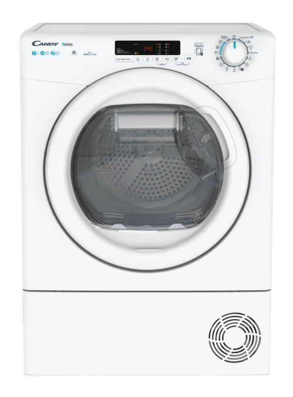 Candy Smart CR4 H7A1DE-S to kompaktowa suszarka, idealna tam, gdzie liczy się każdy centymetr – jej wąska szerokość 46,5 cm sprawia, że bez problemu zmieści się nawet w mniejszych łazienkach czy wnękach. Mimo niewielkich wymiarów urządzenie oferuje pojemność 7 kg, dzięki czemu poradzi sobie z suszeniem ubrań nawet dla kilkuosobowej rodziny.