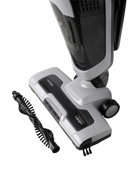 Wbudowany silnik w szczotce głównej sprawia, że odkurzacz z łatwością wyciąga kurz z głębi dywanów. Dodatkowe **szczotki boczne** dbają o to, by kurz nie gromadził się wzdłuż ścian i w rogach pomieszczeń, zapewniając precyzję sprzątania, której nie oferują standardowe modele.